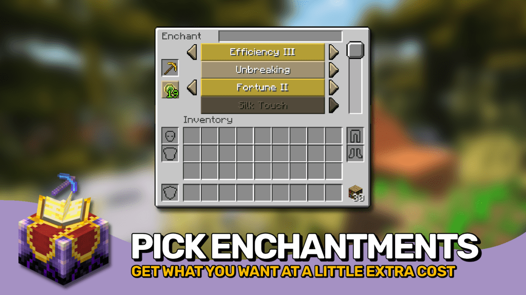 Dodaje do gry specjalny enchant (potrzebuje biblioteczek), który pozwala wybierać enchanty które chcemy (oczywiście za odpowiednią opłatą). Obsługuje enchanty z modów, za pomocą moda Mod Menu (w 3 kategorii więcej o tym modzie) można edytować config w grze, który jest rozległy